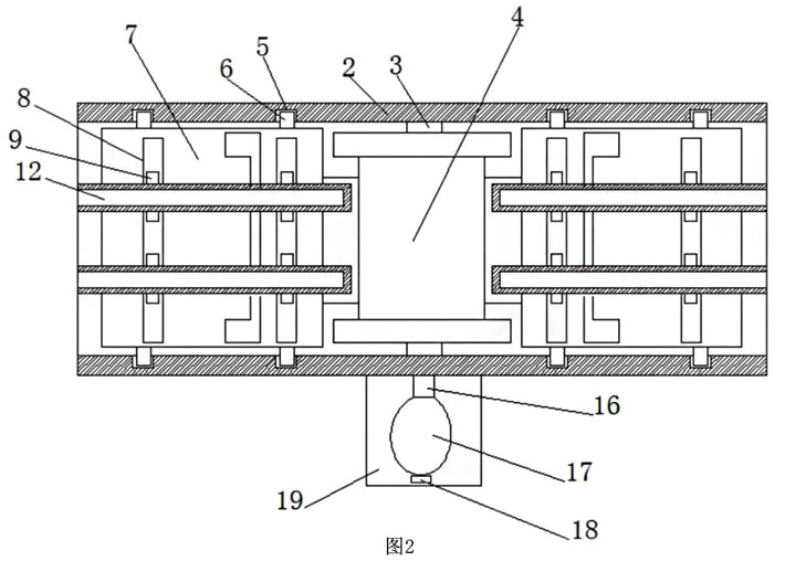升降活動槽5與升降滑塊6的數量均為四個,且兩個升降活動槽5與升降滑塊6為組,兩組升降活動槽5與升降滑塊6分別分布在升降板7的頂面,使得定位滑軌12的移動更為穩定,不易卡住。