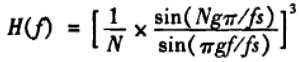 已知工頻耦合噪聲基波頻率為50Hz,因此可以采用模擬或數字濾波器使濾波器帶寬限制在50Hz以內以抑制噪聲。在實際應用中使用 sigma delta模數轉換器AD74內部包含的數字濾波模塊,數字濾波器相對模擬濾波器除具有靈活性高、參數設置方便等特點還可以降低AD轉換期間引人的噪聲。AD774數字濾波器為(sinr/x)3低通濾波器,其在頻域的傳遞函數為: