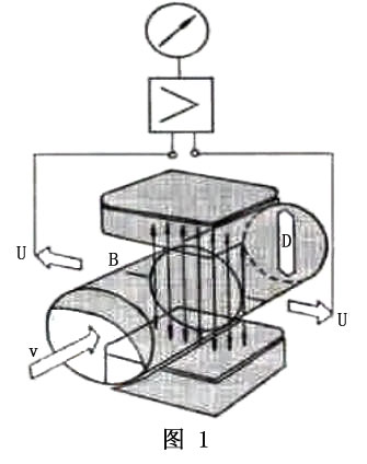 如圖1所示,在一內徑為D,內部磁場強度為B的非導磁性測量管內,液態(tài)的具有導電性被測介質以v的速度流動,則在與流動方向垂直的方向上產生與流量成比例的感應電勢U,該電勢的大小如下