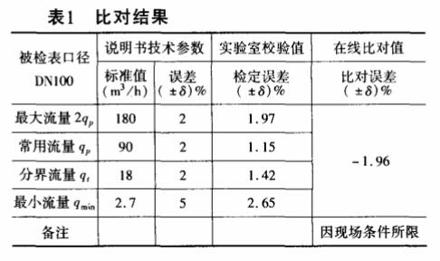 在使用現(xiàn)場(chǎng),該流量計(jì)在線測(cè)量供水流量。檢測(cè)設(shè)備采用日本富士便攜式超聲波流量計(jì)作為比對(duì)表(該比對(duì)表通過國家大流量檢測(cè)站校準(zhǔn),并取得了檢定證書),準(zhǔn)確度為.5%,對(duì)在線電磁流量計(jì)進(jìn)行比對(duì),比