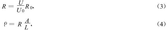 式中:卩為電阻率;U為裝有煤泥的圓柱狀絕緣料筒兩端電壓;U0為.定值電阻兩端的電壓;A為橫截面積;L為兩電極之間的距離.采用四相電極參比電阻法測量煤泥電阻率,設計實驗電路如圖3所示.實驗步驟如下:①首先測量絕緣料筒內徑及長度.用游標卡尺多次從不同角度測量絕緣料筒的內徑及長度并記錄,分別取平均值.②測量室內溫度并記錄.③取適量煤泥加入一定的水,充分攪拌,用含水率儀測量含水率并記錄,使含水率為