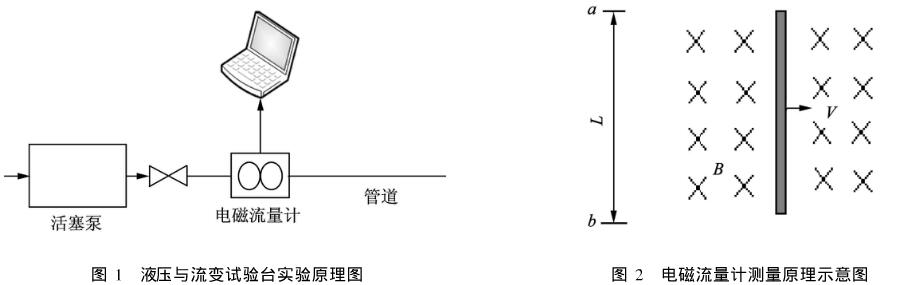 本文選用不同質量濃度的煤泥在裝有電磁流量計的液壓與流變試驗臺上(實驗原理如圖1)進行管道輸送實驗.電磁流量計根據電磁感應原理測量流過管道中導電流體旳流量.故使用電磁流量計的前提是被測流體必須導電。且電導率不能低于閾值(即下限值).通用型電磁流量計的閾值在(5×106)S/cmI04S/cm之間、若電導率低于閾值會產生誤差甚至不能測量.根據電磁感應原理(如圖2),當導電流體在磁場強度為B的磁場中切割磁力線時,在線形長度為L的a和b兩點之間會產生感應電動勢.為