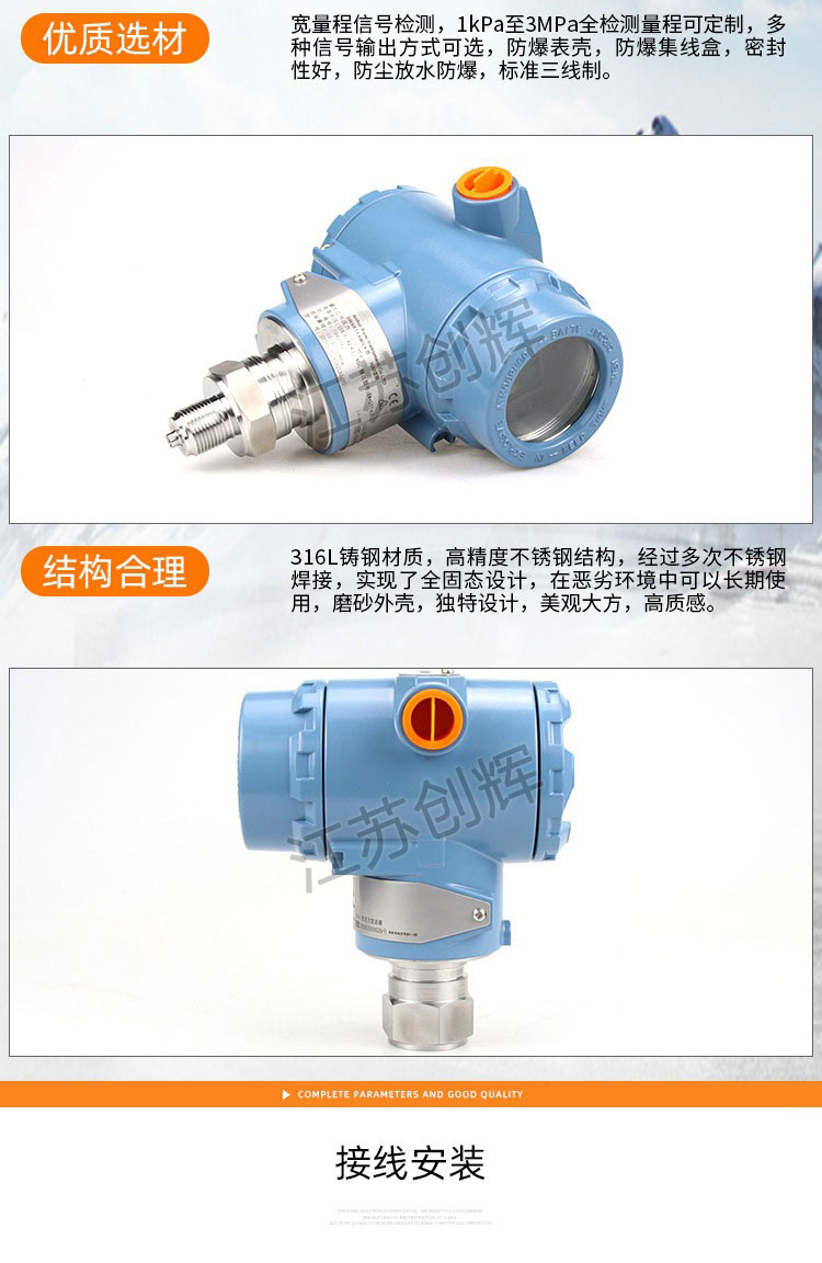 1、壓力變送器具有工作可靠、性能穩定等特點;